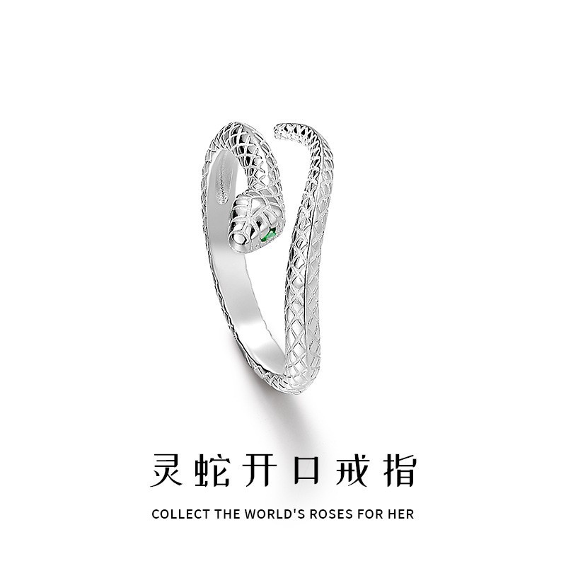 Po 999 Silver Fashion Silver Snake Finger Ring Index Finger Snake Zodiac Snake Chaorman Open Ring Men's and Women's Ring