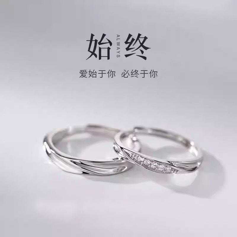 S925 Silver Couple Ring for Men and Women A Pair Touching Sincerely European and American Fashion English Letters Adjustable Opening of Ring