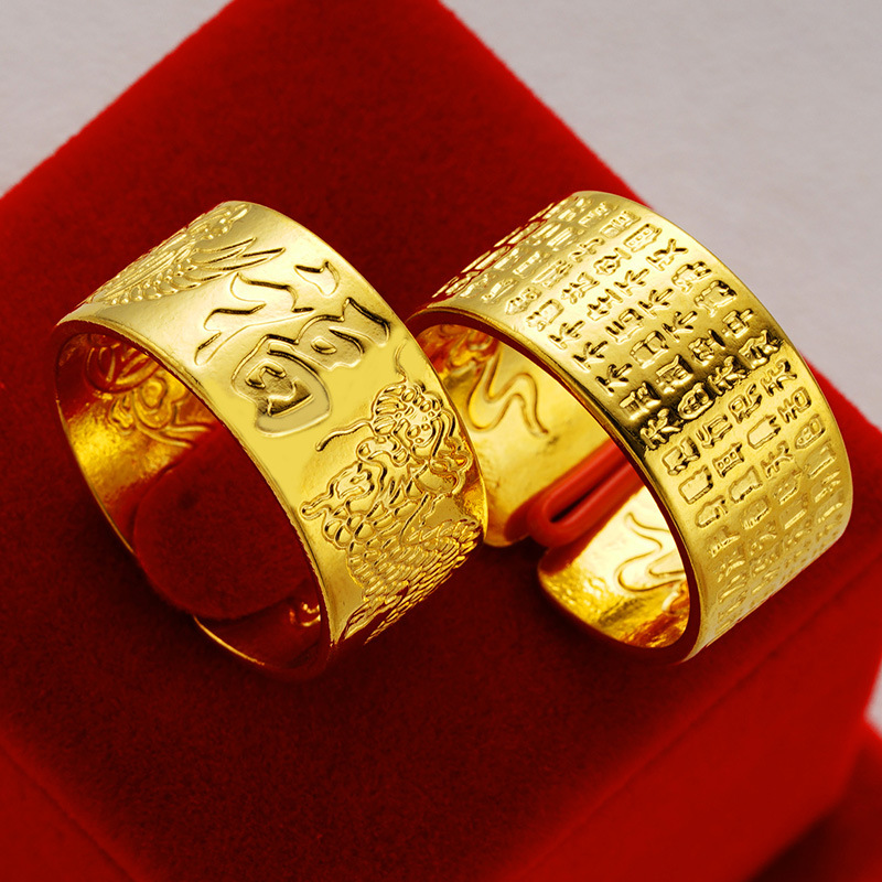 Wholesale 10mm six words proverbs heart meridians open ring imitation gold brass wrench ring Vietnam sand gold ring men