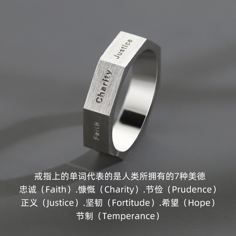 Multi-faceted Seven Virtues Ring Men's Ins Niche Trendy Personalized Finger Ring Men's Single Ring Letter Open Ring