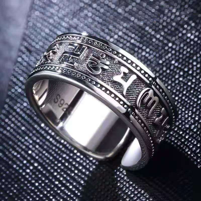 Six-character mantra sterling silver S925 Heart Sutra ring six-character men's and women's silver opening couple's ring domineering postage
