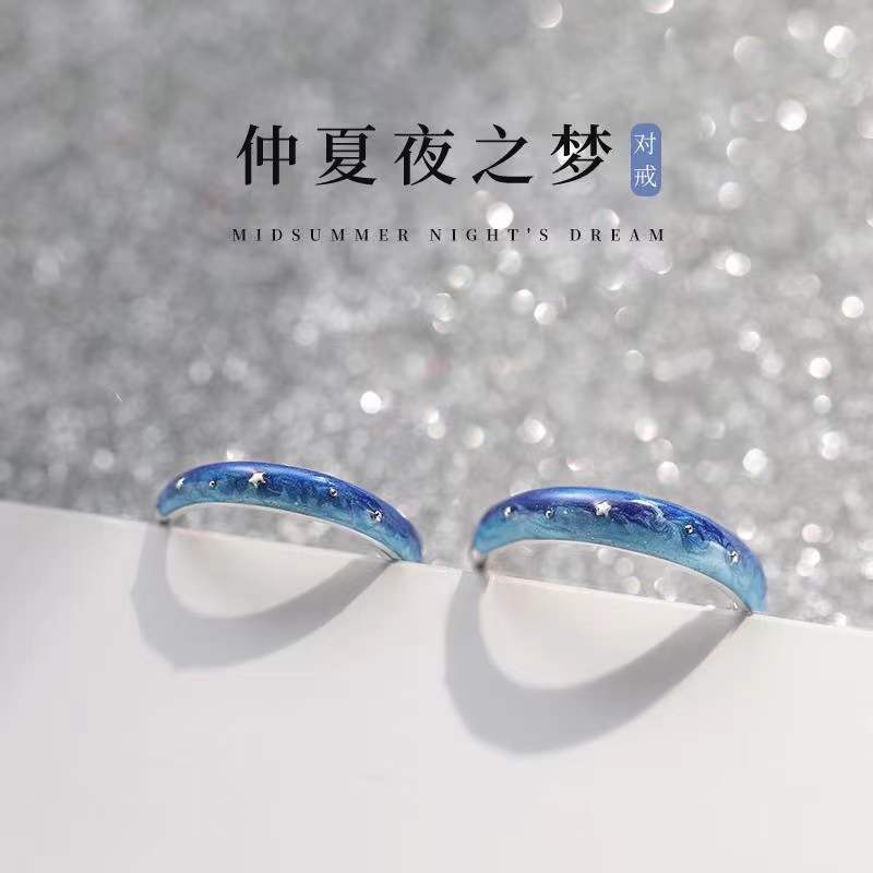 Blue Star Couple's Ring Men's and Women's Fashion Trend Fresh Open Ring Midsummer Night's Dream Couple's Ring
