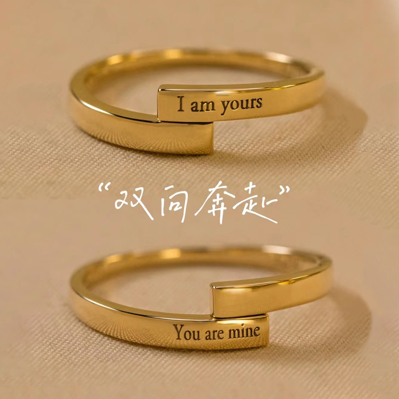 Fall in love couple ring men and women a pair of light luxury niche high-grade light luxury wedding ring lettering proposal ring wholesale