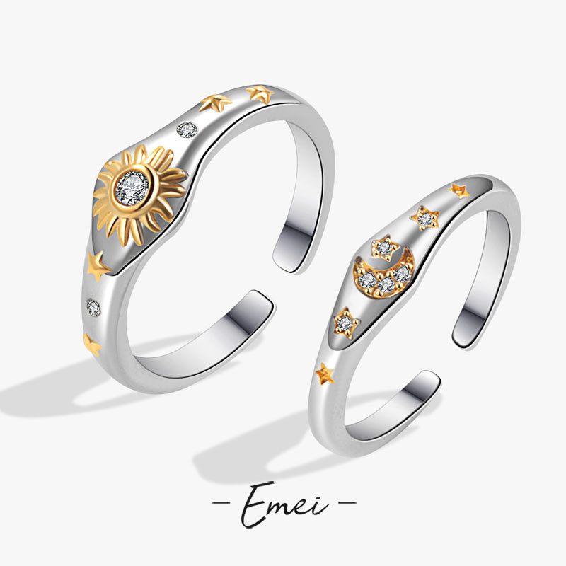 Couple Rings, a Pair of New Husk Color-Separated Adjustable Rings, Simple and Versatile, Fashionable Sun and Moon Rings Wholesale