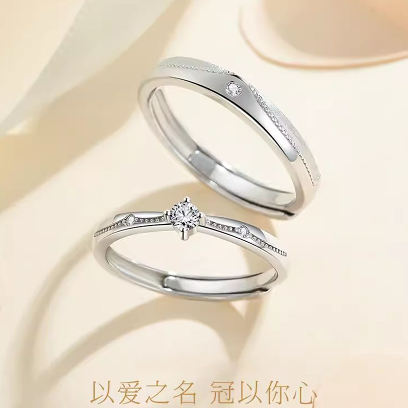 s925 sterling silver ring for men and women, in the name of love, propose with your heart couple's ring, a pair of niche design sense