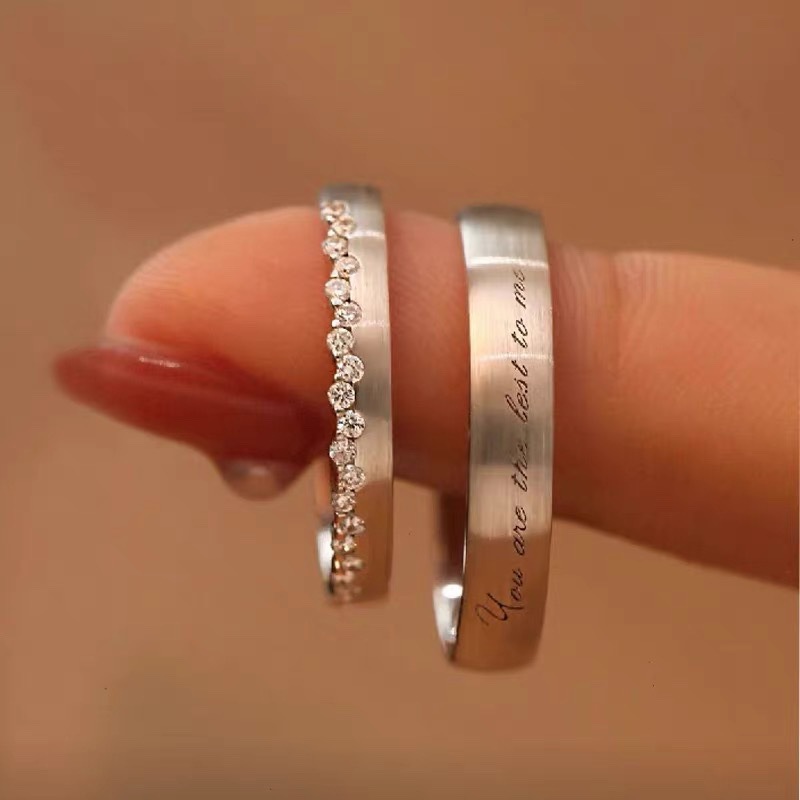 S925 Silver Couple Ring for Men and Women A Pair Touching Sincerely European and American Fashion English Letters Adjustable Opening of Ring