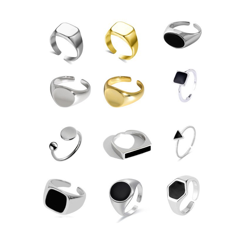 Fashionable Geometric Square Round Glossy Open Ring Combination European and American Men and Women Personalized Index Finger Ring Cross-Border Supply