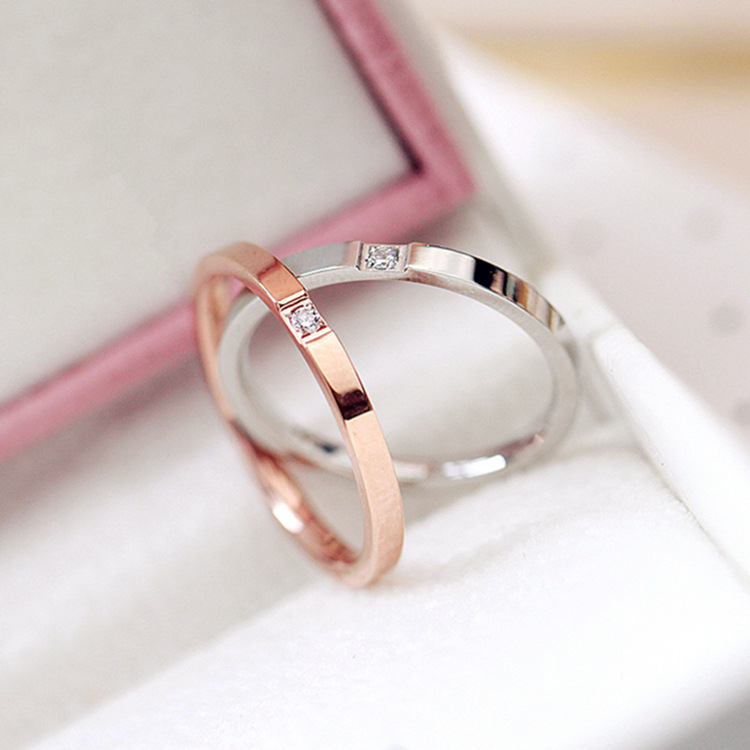 New fashion single diamond diamond ring ring ring Korean men's Joker titanium steel ring thin ring Women's wholesale
