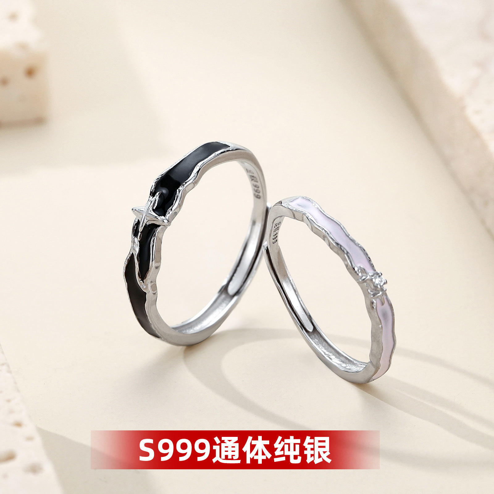 Lianlizhi Couple Men's and Women's Ring Light Luxury Niche Design Sense A Pair of Ring Adjustable Gift Wholesale