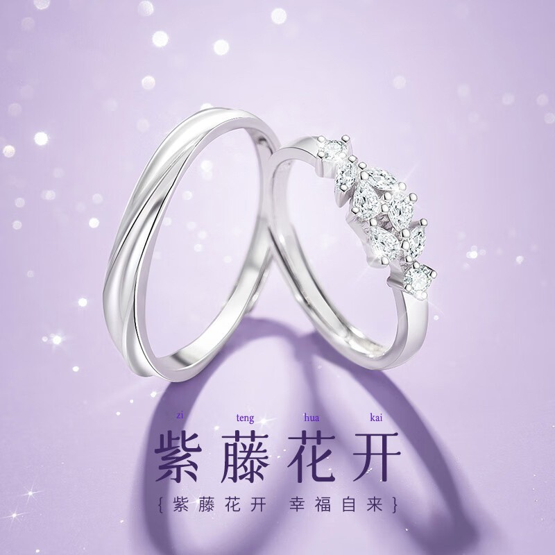 wisteria flower couple pair ring S999 foot silver ring a pair of men and women's niche design birthday gift for male girlfriend