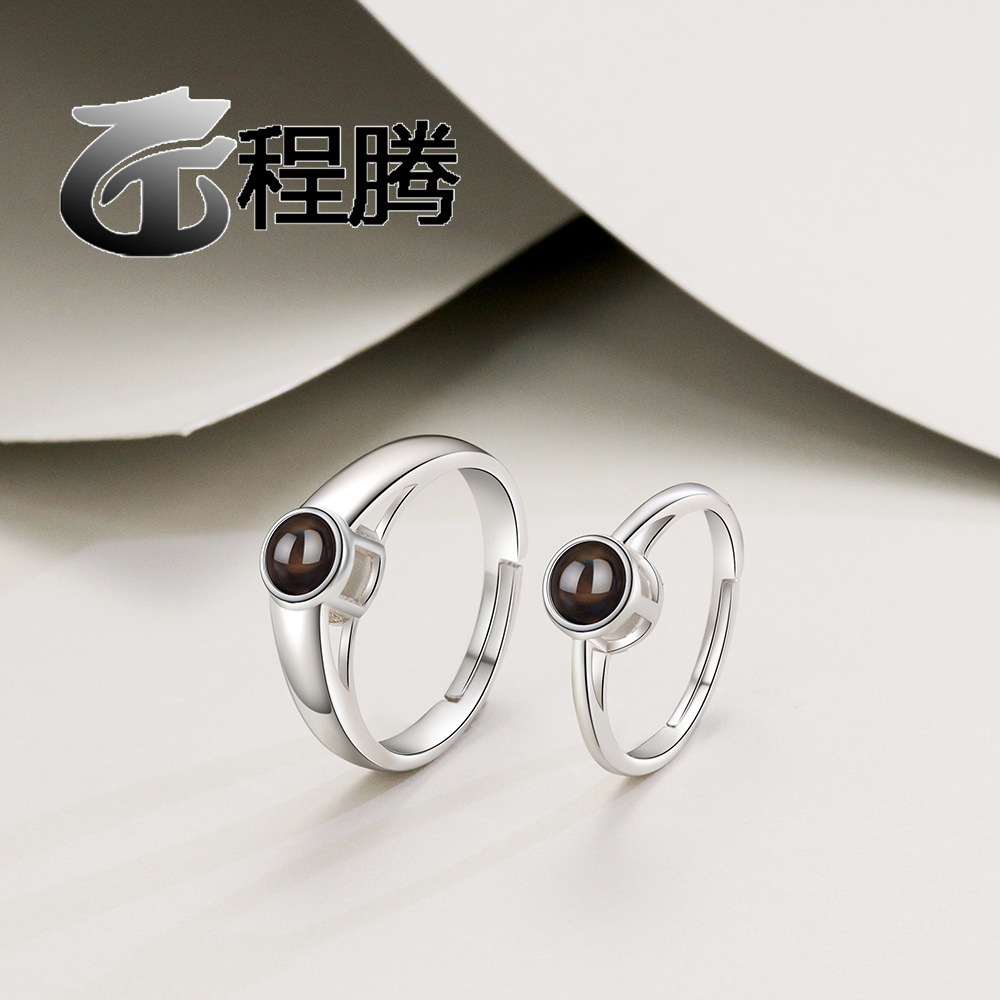 S925 Sterling Silver Simple Men's and Women's Rings 100 Languages Photo Projection Styles, Versatile and High-End Rings