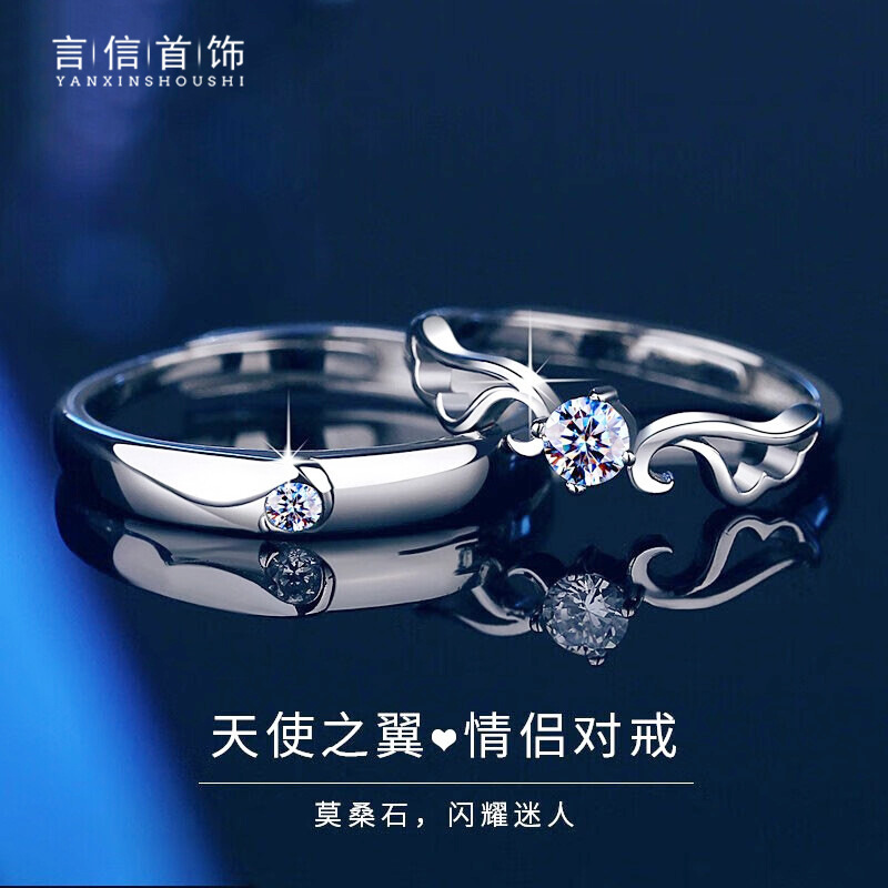 Angel wings Diamond couple ring men's and women's 925 sterling silver moissanite ring niche design bracelet