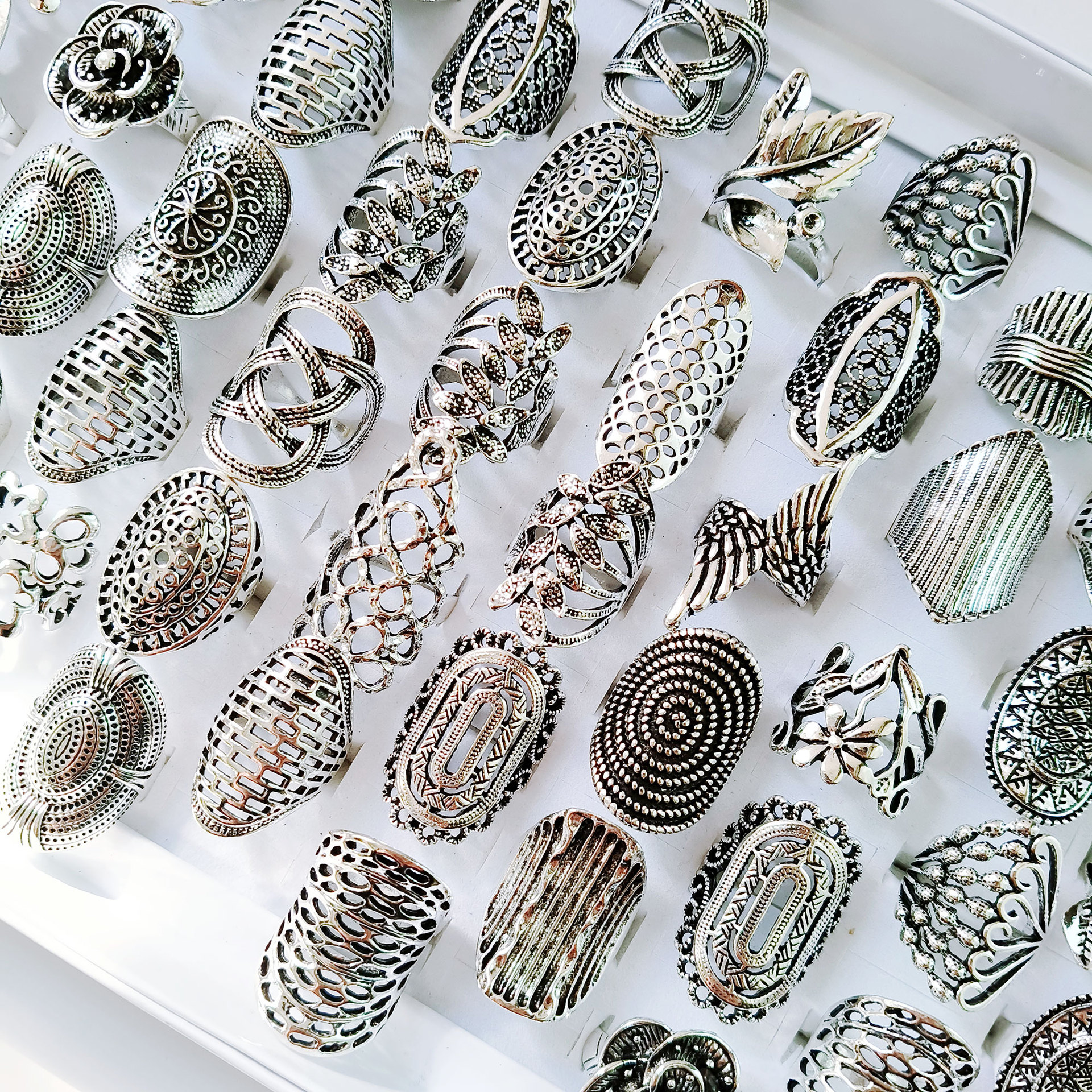 European and American Retro Style Wide Finger Rings for Women Export Export Old Cut Out Pattern Personalized Trendy Cool Stacking Ring Jewelry