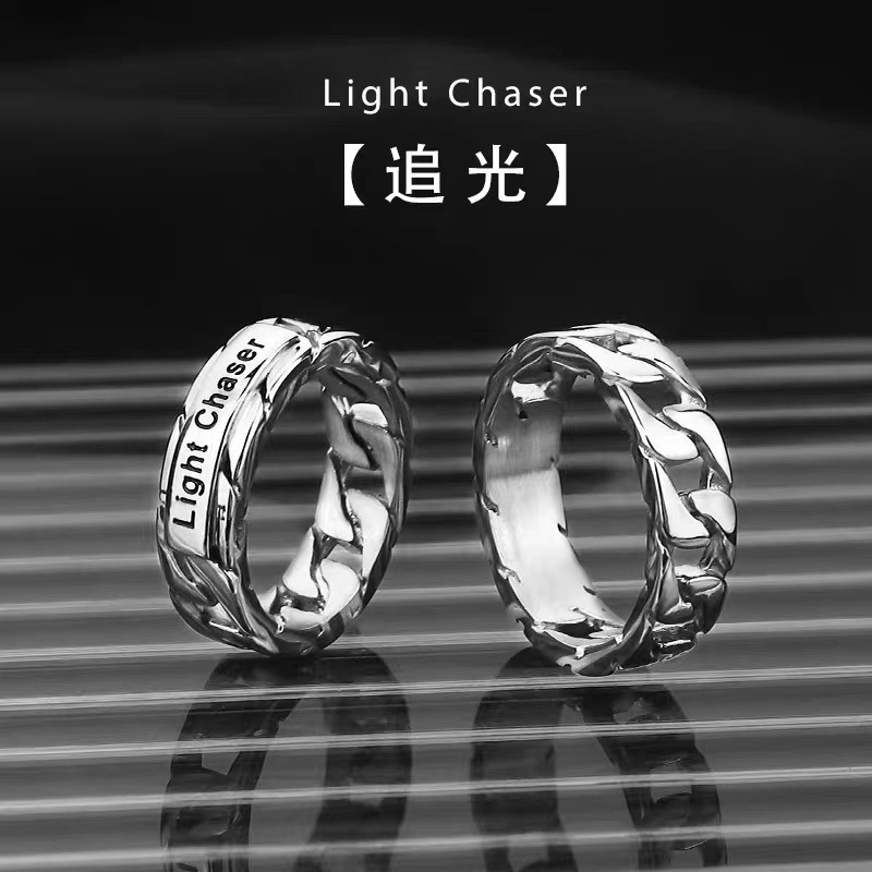 Cross-Border New Ins Retro Design Light-Chasing Ring for Men and Women, Personality Minimalist Style, Trendy Single Simple Adjustable Ring