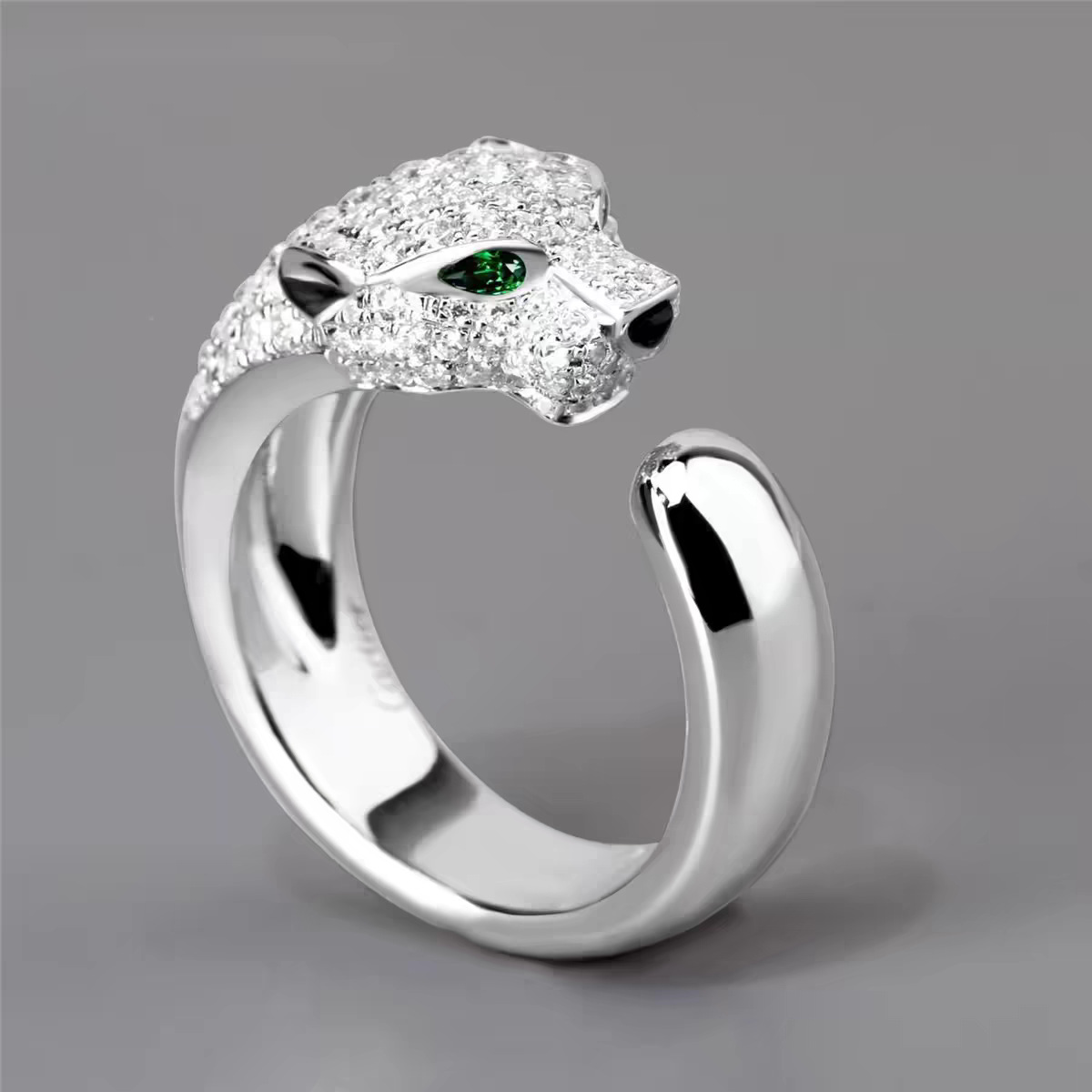 Trendy European and American Light Luxury Fashion Men's Leopard Print Open Ring with Platinum-Plated Micro-Paved Zircon, Artistic Retro Style