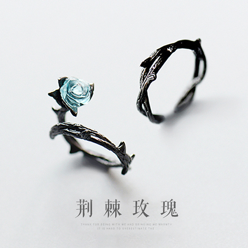 Thorns Rose Ring for Men and Women Couple Pair Ring Personalized Niche Design Open Index Finger End Ring Sterling Silver Ring