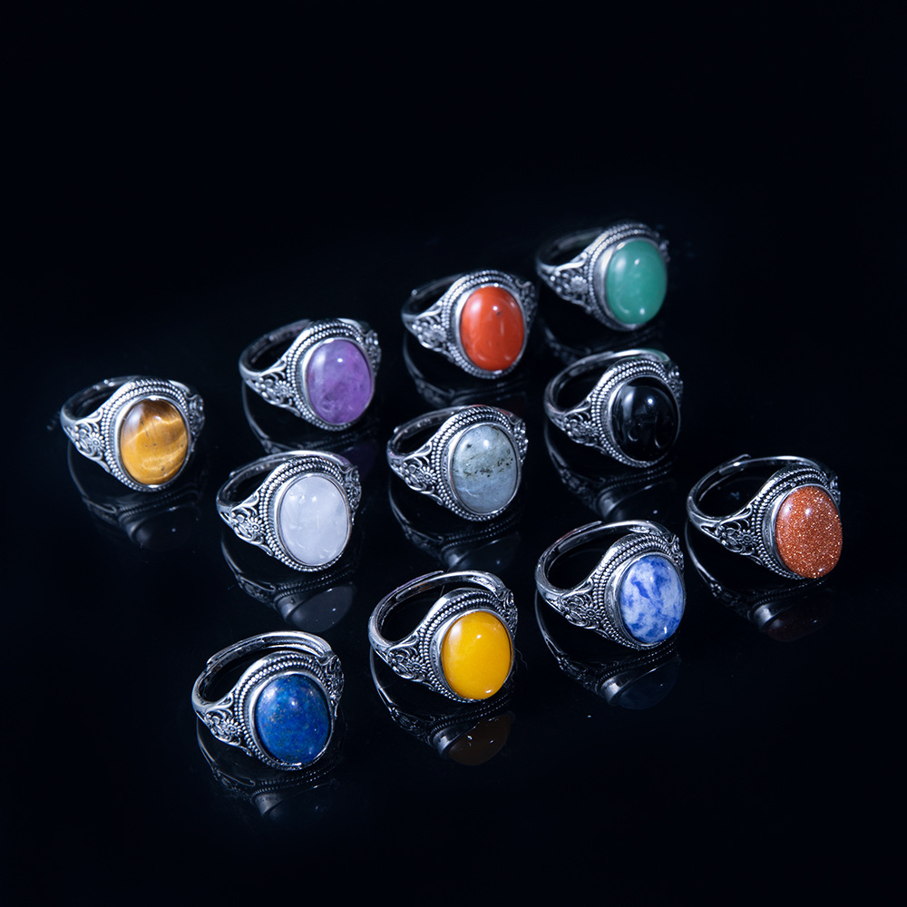 New Inlaid Craft Retro Fashion Ring Natural Stone Amethyst Tiger Eye High Quality Copper Ring Cross-Border Men's and Women's Ring
