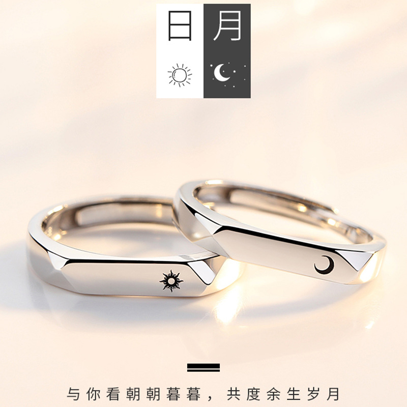 99 sterling silver couple ring Sun Moon star rhombus men and women one pair ring simple niche design couple ring into the bone lovesickness