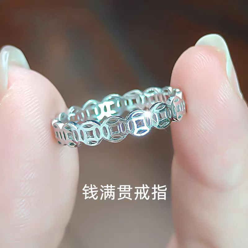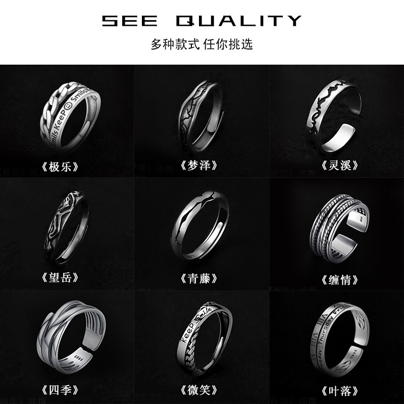 S999 Foot Silver New Chinese Style National Style Jiyan Couple's Ring Simple Advanced Temperament Personality Design Ring