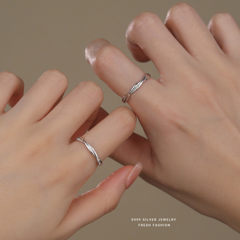 S999 Sterling Silver Mobius Couple Ring Simple Fashion Niche Ring All-match Foot Silver Interwoven Ring for Ring
