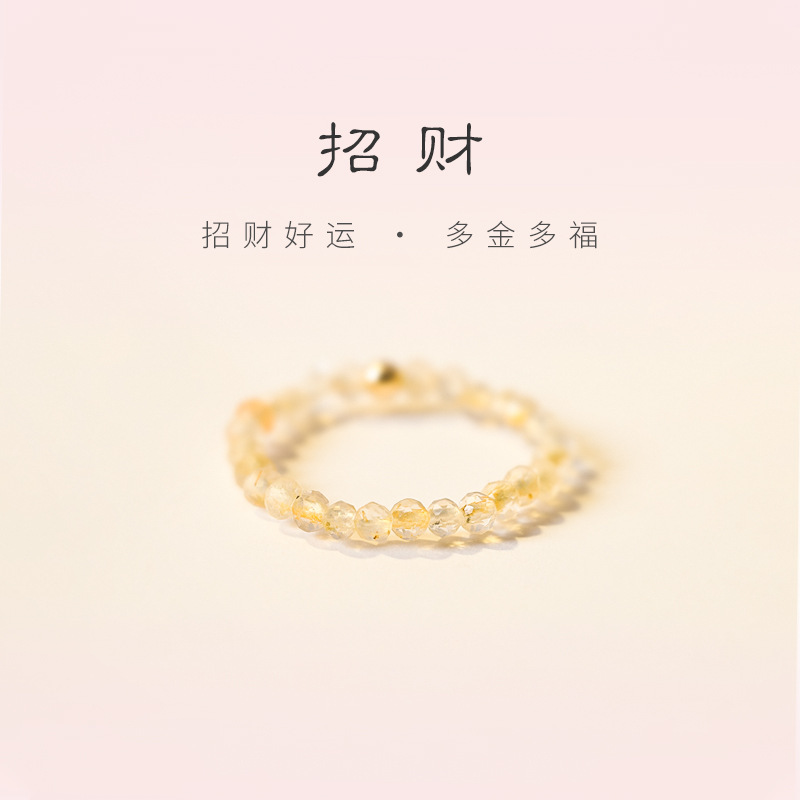 Overnight Rich Extremely Fine 2mm Citrine Ring Women's Transfer Beads Superfine Autumn Design Sense Niche Ins Ring Ring