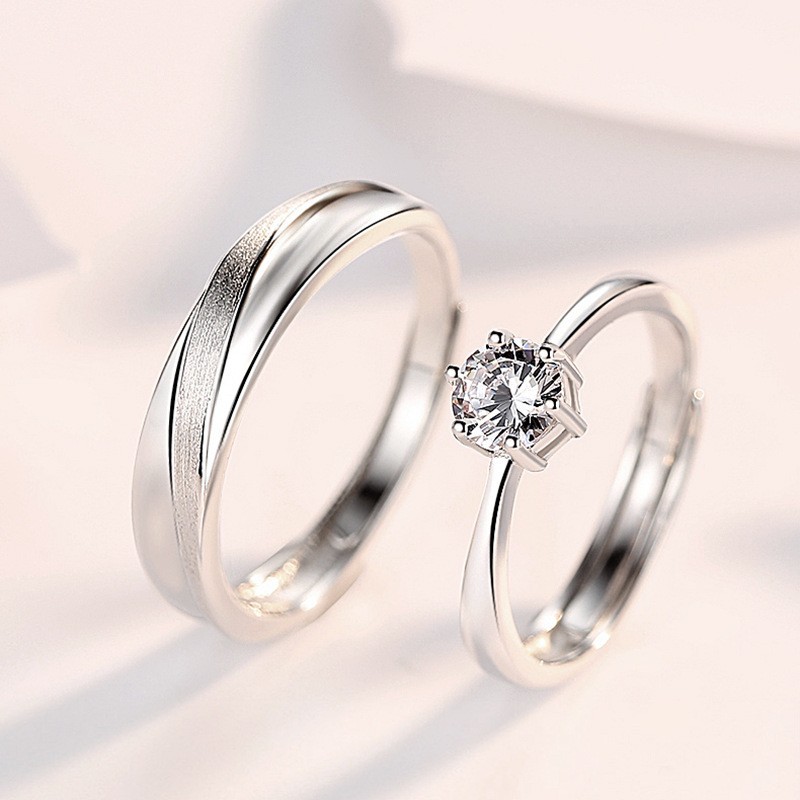 Cross-border e-commerce s925 Silver live broadcast station explosions couples ring 1 karat imitation diamond ring students men and women ring wedding ring
