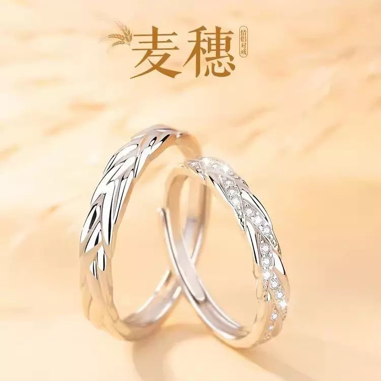 Wheat Couple Ring Niche Design Love Token Men's and Women's Open Ring Hand Accessories Chinese Valentine's Day Gift 2025 New Style