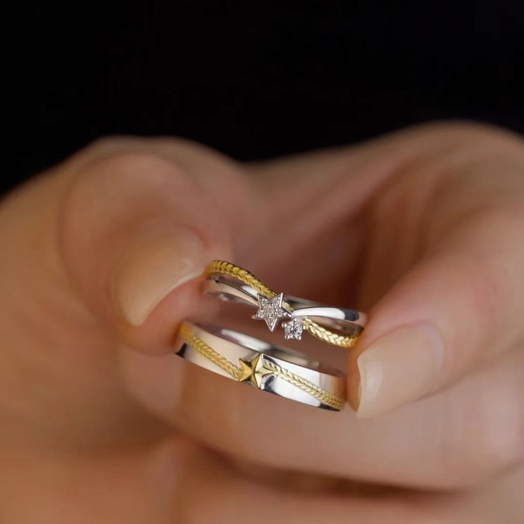 Lovers fans colorful five-pointed star couple wedding ring shining classic atmosphere elegant niche feeling long-distance love ring