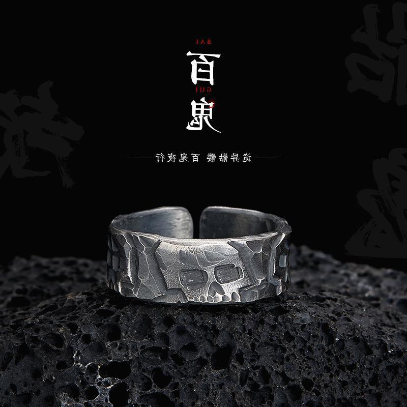 Retro Japanese and Korean Style Personalized Retro Ring 925 Thai Silver Gothic Style Men's Fashionable Personalized Open Ring Ring