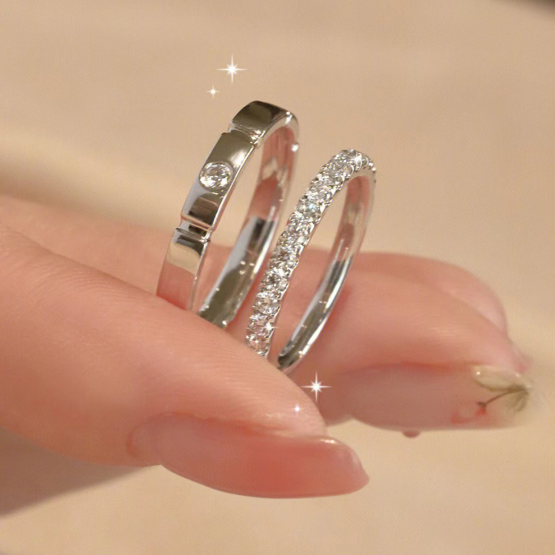 Xiaohongshu's Same Style S925 Sterling Silver Sparkling Niche Gemstone Couple Wedding Ring Row Ring Moissanite Diamond Ring Versatile