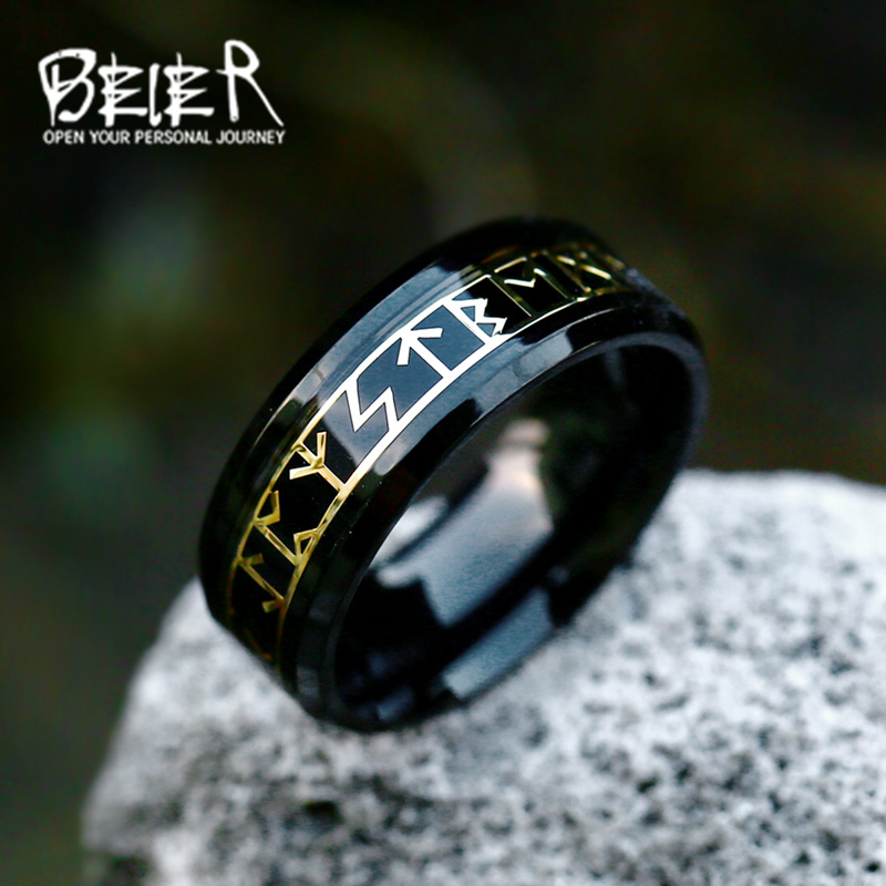 beier Japanese and Korean fashion simple stainless steel plating ring wholesale Nordic Viking letters titanium steel men and women ring