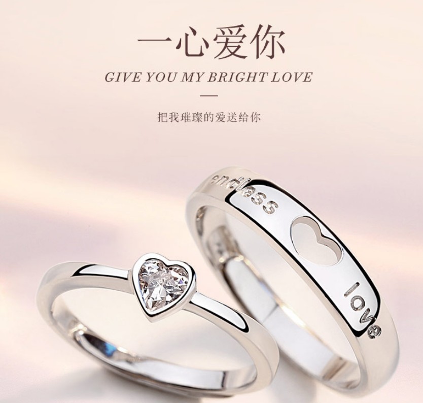 Forever Concentric Couple Ring Men's and Women's Hollow Love Diamond Ring Long-distance Love Gift Undivided Heart Opening Ring