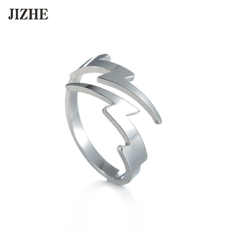 Cross-border European and American Stainless Steel Lightning Opening Men's Finger Ring Hip-hop Boyfriend Wind Titanium Steel Color-free Ring Couple