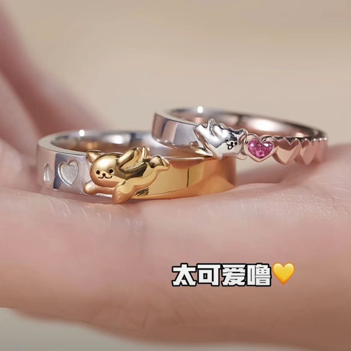 Line Puppy Ring New Couple Ring Couple Ring Light Luxury Love Puppy Cute Gift for Girlfriend 2024 New Style