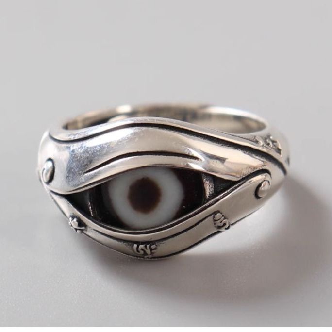 [Fine Craftsmanship] 2025 New Dzi Bead Inlaid Retro 925 Silver Inlaid Dzi Bead Ring Xizang Buddha Eye
