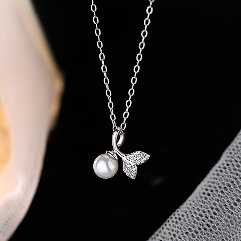 S925 Sterling Silver Fishtail Pearl Necklace Women's Small Fresh Accessible Luxury Niche Clavicle Chain 2025 New Neck Chain