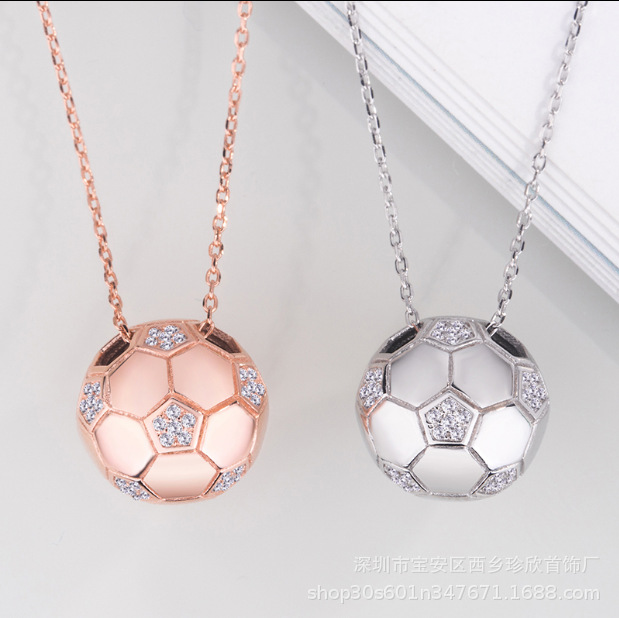 World Cup Pearl Soccer Necklace Women's Small Golden Ball Memorial Pendant Collarbone Simple All-match Anti-allergy Jewelry