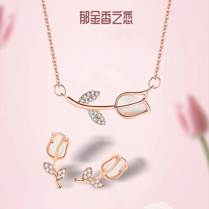 S925 Sterling Silver Necklace Sweet Tulip Japanese and Korean Style Small Fresh Necklace Niche High-grade Floral Clavicle Chain Student
