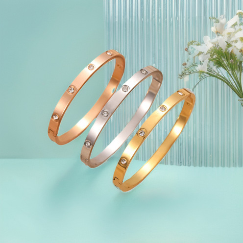 Aliexpress Cross-Border Foreign Trade Jewelry Zircon Ring Titanium Steel Bracelet Korean Style Fashion Titanium Steel Zircon Bracelet