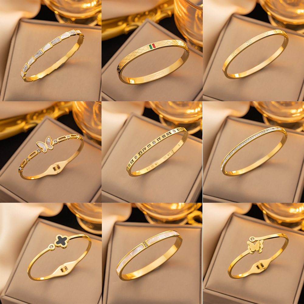 Color-free full-body titanium steel bracelet European and American INS style light luxury extremely simple cross-border fritillary stainless steel bracelet jewelry