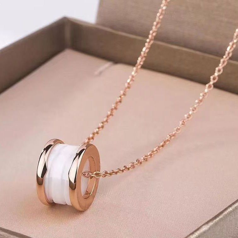 Cross-border titanium steel rose gold jewelry necklace women's retro non-fading three-ring Roman text pendant clavicle chain wholesale