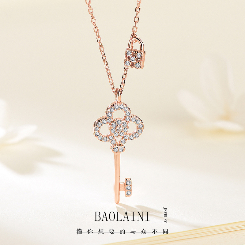s925 sterling silver key lock necklace diamond pendant clavicle chain Girls High Fashion Light luxury jewelry birthday gift