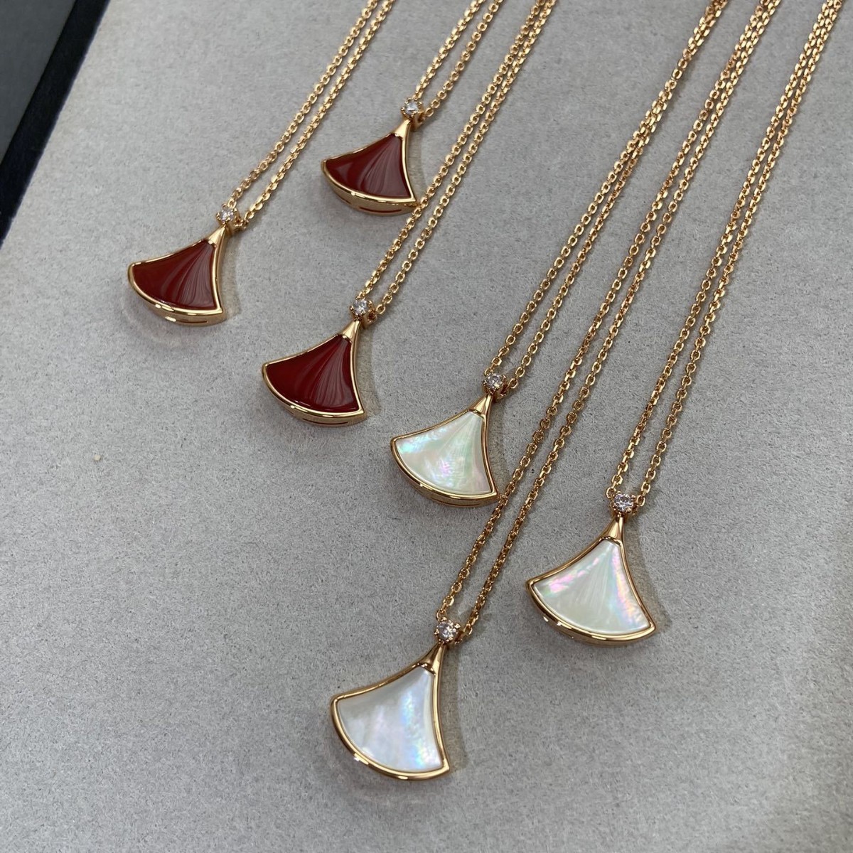 New Imitation Silver Diamond Small Skirt Necklace Women's White Shellfish Red Agate Fan-shaped Trendy Fashion Small Online Celebrity Live Source