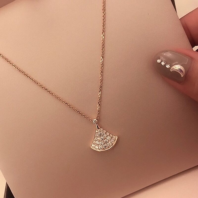 Small skirt fan-shaped necklace for women 2021 New light luxury simple clavicle chain full diamond rose gold temperament jewelry