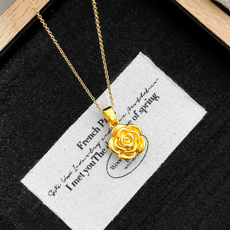 Vietnamese Sand Gold Romantic Small Rose Pendant Women's Ancient Gold Exquisite Flower Clavicle Necklace Jewelry Supply Wholesale