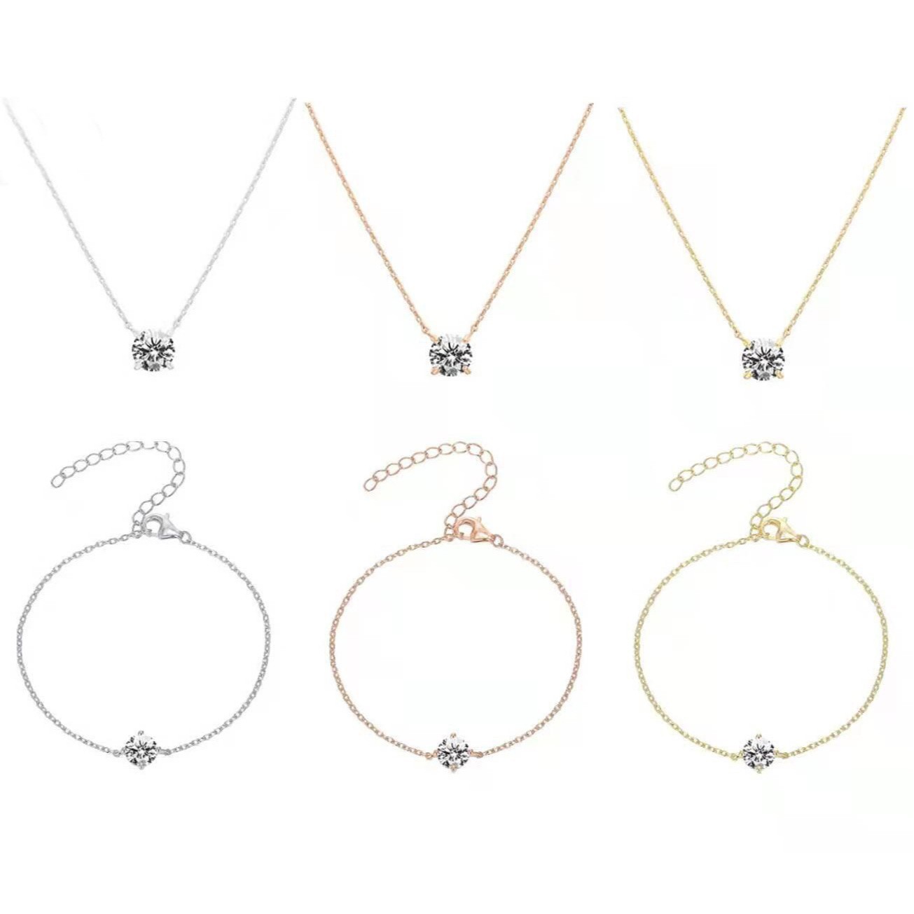 Cross-Border Live Broadcast 18K Gold Imitation Moissanite Classic Four-Claw 2 Carat Fresh and Simple Clavicle Chain Pendant Necklace for Girls