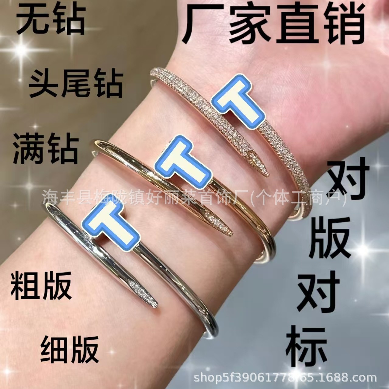High Version V Gold Thickness 18K Rose Gold Bracelet Wide Version Narrow Version Diamond-Encrusted Smooth Starry Sky Factory Direct Sale