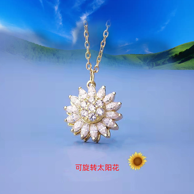 Super Flash Sunflower Rotary Necklace Micro-inlaid Zirconium Sunflower Pendant Niche Design Transfer Shake Tone Explosions Wholesale