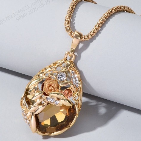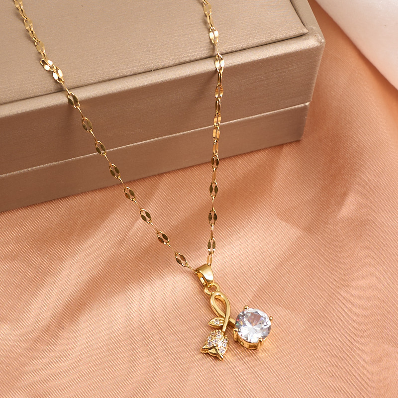 [Titanium Steel] Rose Zircon Light Luxury Gorgeous Full Diamond Necklace Female Internet Celebrity Easiest for Match Clavicle Chain Titanium Steel Chain