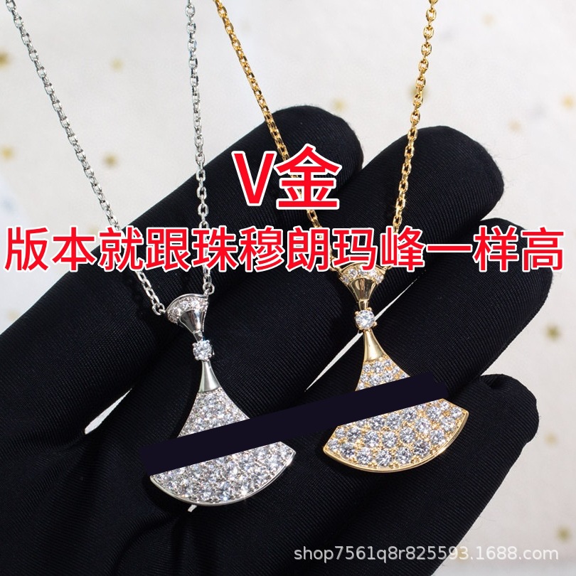 High Version V Gold Large Skirt Necklace for Women, Plated with 18K Rose Gold, Full Diamond Double-Layer Small Fan-Shaped Pendant Clavicle Chain Wholesale
